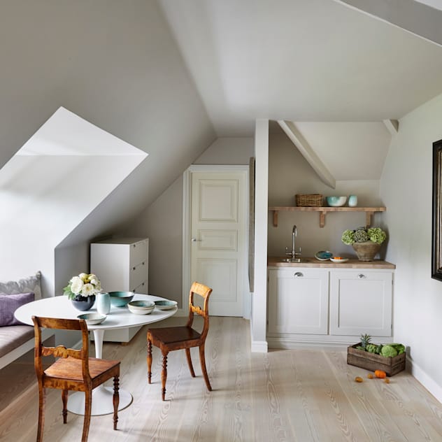 Small homes often have an open-plan kitchen, living and dining area at their core, so it's important to break up and delineate that space. A practical way to do this is by using colour in both the furniture and the walls to mark out what belongs to one room and what to another.